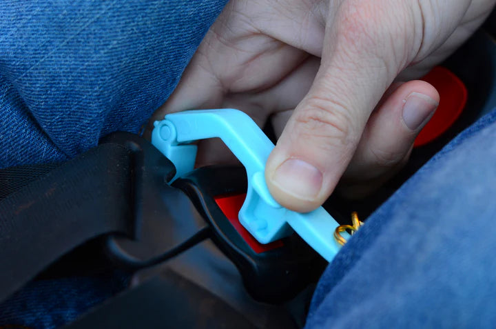 ¡Desabroche los asientos del automóvil fácilmente! Buckle Pals ofrece una manera fácil para que los adultos desabrochen los asientos del automóvil. Utilizan un brazo de palanca para reducir la fuerza necesaria para desabrochar un asiento de seguridad. Simplemente deslice el botón rojo y aplique presión para soltar fácilmente las hebillas. Reduzca la fuerza necesaria para desabrochar: utilizando el concepto de una máquina simple (la palanca), Buckle Pals facilita que los adultos desabrochen los asientos del automóvil. Son perfectos para quienes tienen problemas para desabrochar las sillas del coche. Ideal para uñas demasiado largas como para presionar el botón rojo, perfecto para quienes tienen problemas con dolencias en las manos como la artritis. Fácil de usar: haga que desabrochar los asientos del automóvil sea más fácil que nunca. Simplemente deslícese sobre la hebilla, presione el botón usando la hebilla y suelte las hebillas. ¡Eso es todo! Fácil de usar: se incluye un elegante cierre para que pueda sujetar el cubo amigo a su llavero. Se adapta a la mayoría de los asientos de automóvil con un diseño único con bisagras.