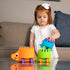 ¡Apila, conecta y deja volar tu imaginación! Set de 4 erizos apilables que se guardan de mayor a menos uno dentro de otro, también se pueden unir y hacer andar como tren. Fomenta las habilidades motoras finas, el razonamiento espacial, el aprendizaje sensorial, el aprendizaje táctil Fabricados en plástico altamente resistente, libre de BPA, son fáciles de limpiar.