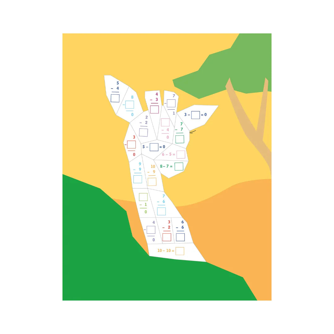 ¡Las matemáticas ahora son pura diversión con calcomanías! Este libro interactivo lleno de actividades ofrece a los niños y niñas de 5 años en adelante la oportunidad de practicar suma y resta básica, mientras crean 10 tiernas imágenes de animales bebés, una calcomanía a la vez.