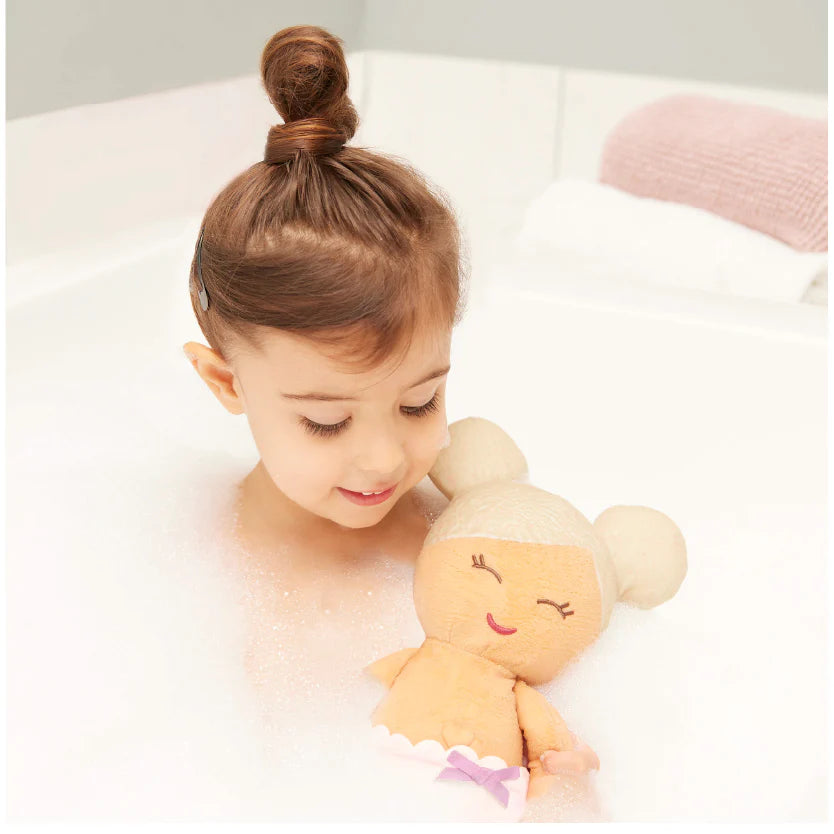 - Muñeca de baño de 36 cm hecha de felpa resistente al agua.