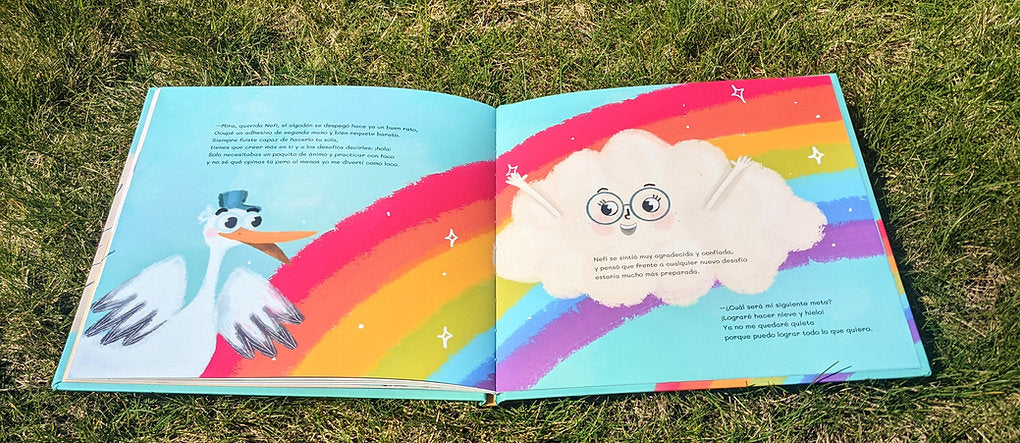 Pero su amigo Omar, una cigüeña perseverante y optimista, no está de acuerdo. Con paciencia, cariño y entrenamiento, invita a Nefi —y a los niños lectores— a descubrir que con esfuerzo y práctica, todo puede cambiar.