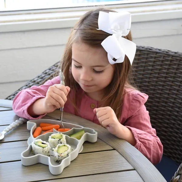 El plato de silicona con succión tiene como objetivo hacer que la hora de la comida sea un poco menos estresante y por otro lado mas entretenida con su lindo diseño.