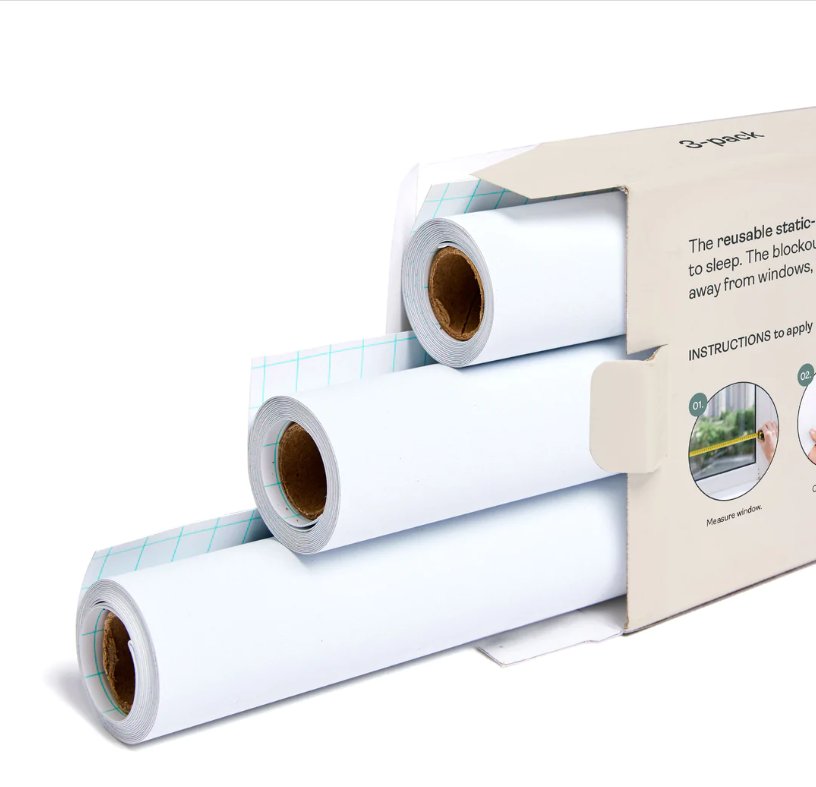 El Window Blockout se adhiere a las ventanas a través de estática, por lo que no necesita adhesivos. No deja residuos pegajosos, y puede ser reutilizada una y otra vez sin perder su adherencia. Se puede quitar durante las horas de vigilia para dejar entrar la luz del sol, y simplemente volver a aplicarlo a la hora de la siesta para bloquearla. Simplemente se enrolla o se dobla para cuando no esté en uso.